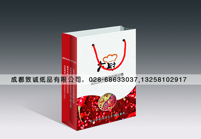 成都包裝廠接到來自四川某某食品公司需要定制一款裝火鍋底料手提打包袋,我公司業(yè)務(wù)員為該公司領(lǐng)導(dǎo)推薦手提袋款式,提出設(shè)計印刷方案,并獲得該公司領(lǐng)導(dǎo)的一致認(rèn)同。該手提袋采用白卡紙印刷。